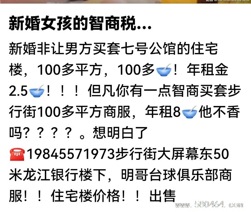 步行街大屏幕东50米.龙江银行楼下,明哥台球俱乐部150平方商服,住宅楼价格出售,2024年全新装修和防水新铺的地热,到手立收今年8🥣租金,价格面议