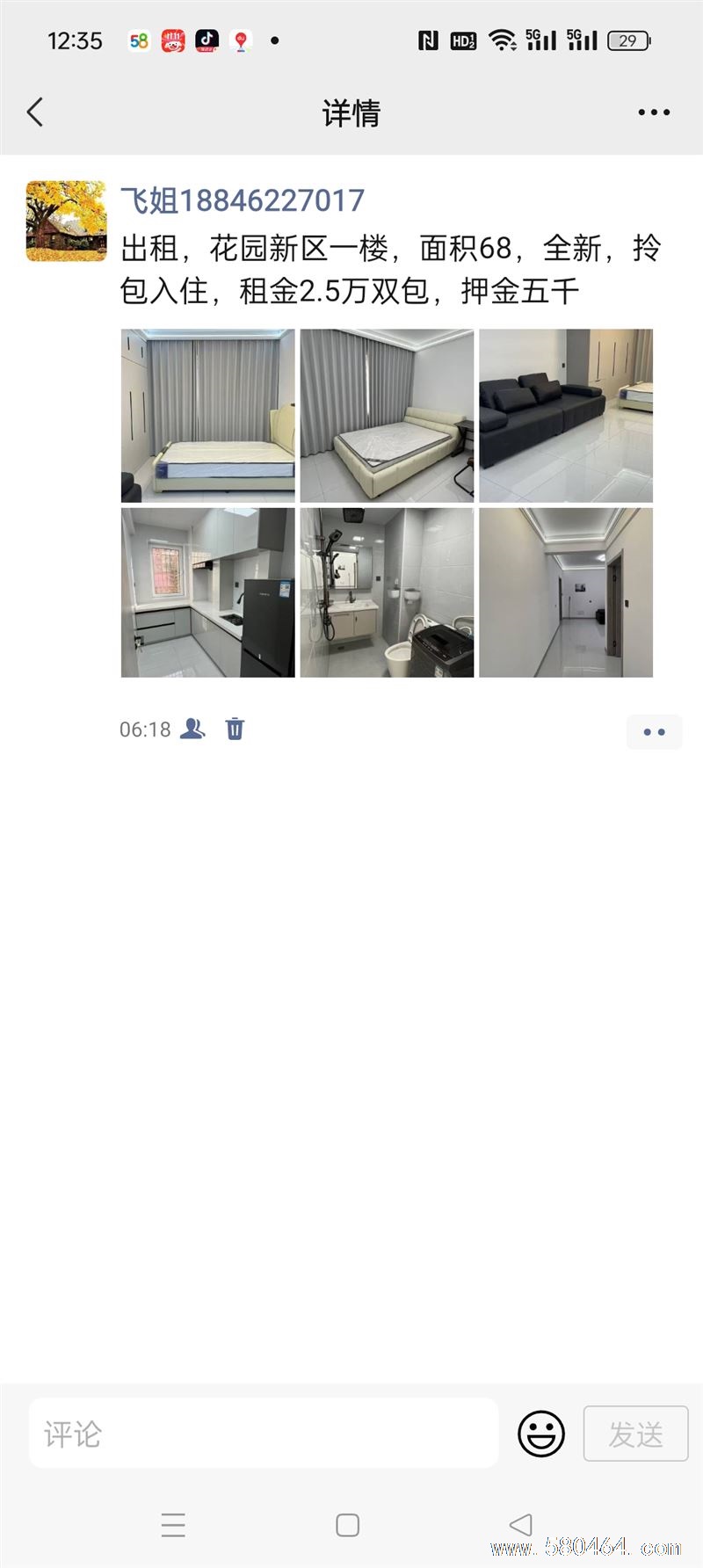 出租,花园新区一楼,面积68,全新,拎包入住,租金2.5万双包,押金五千✔