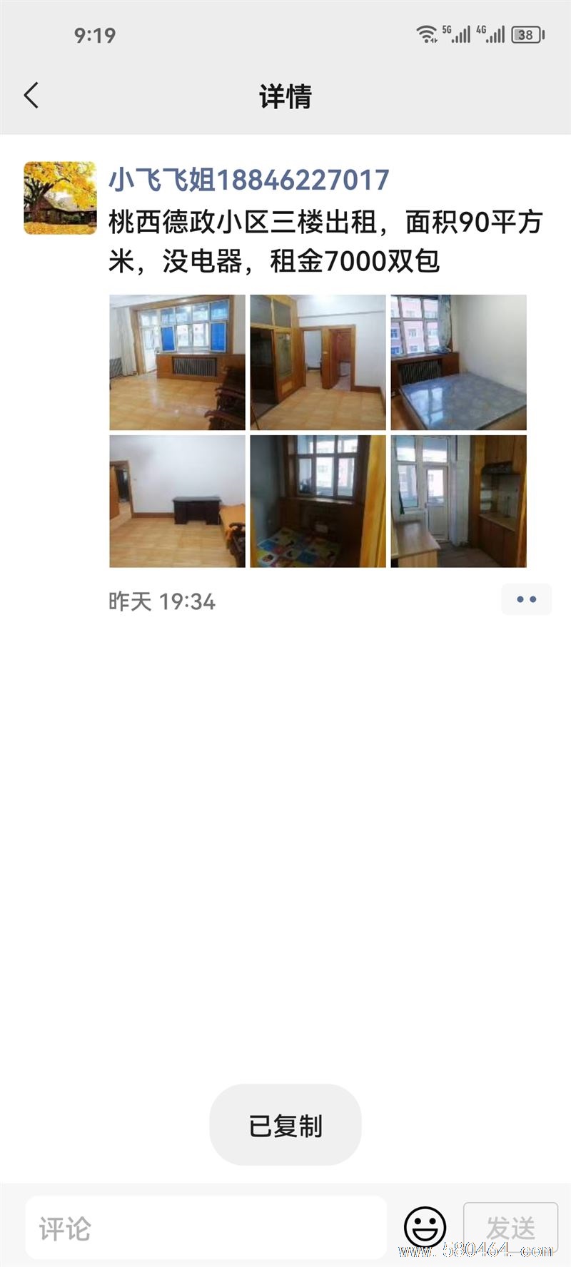 桃西德政小区三楼出租,面积90平方米,没电器,租金7000双包