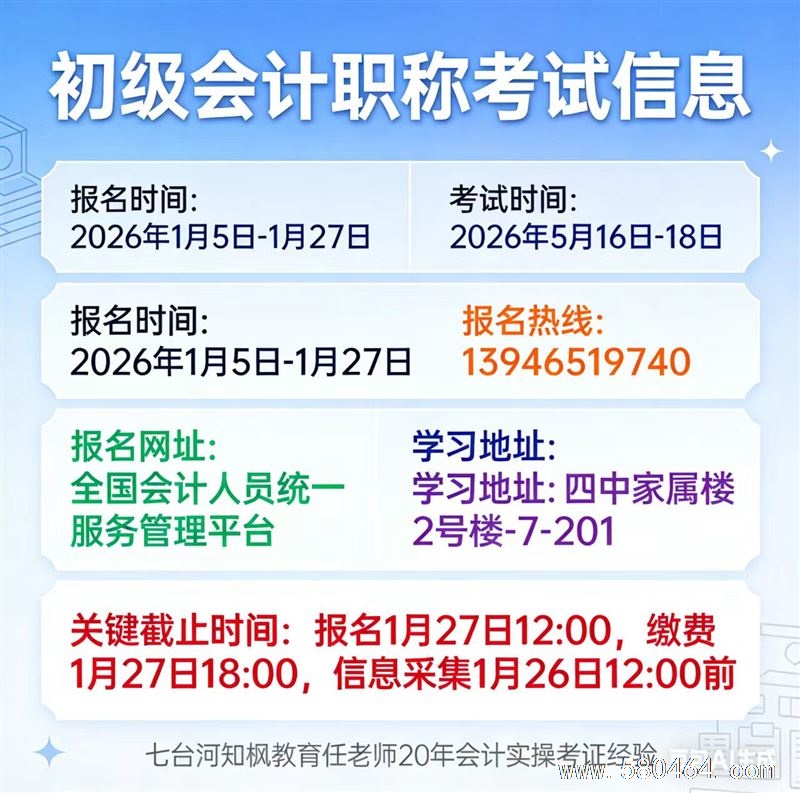 2026年1.5-1.27 初会报名中!任老师 20 年经验,花少钱有效学,避免反复考,地址四中家属楼 2-7-201