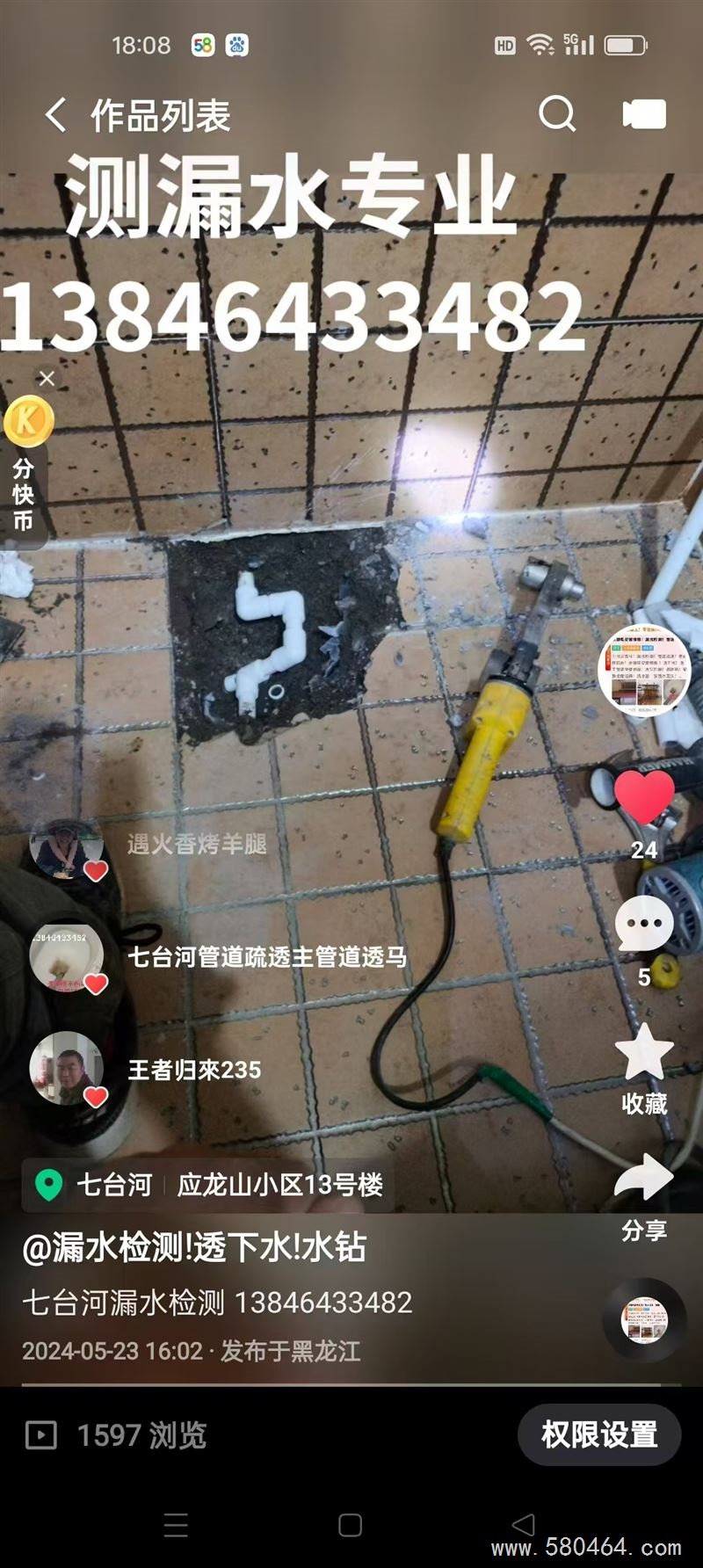 水暖!漏水检测!透下水!水钻打眼!管道疏通!挖下水!改独立管道